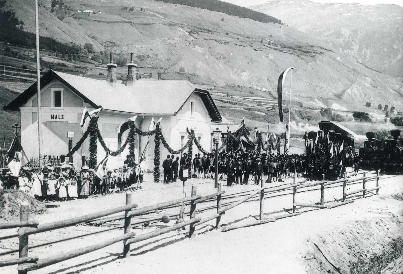 Il capolinea di Malles fu realizzato in modalità provvisoria, in attesa del previsto prolungamento verso Landeck, con un fabbricato viaggiatori di dimensioni contenute costruito con mattoni più leggeri che ne rendevano disagevole l'abitazione nei mesi invernali.